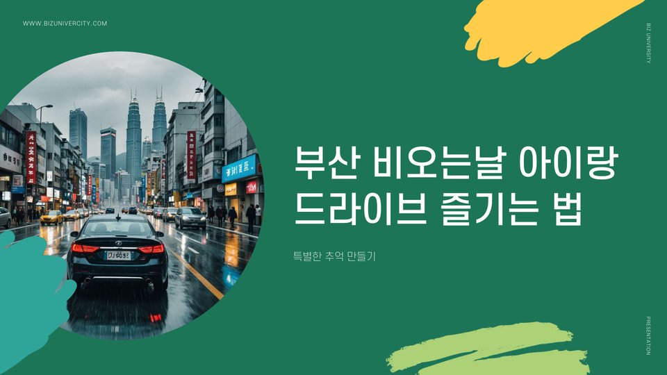 부산의 비 오는 날은 아이와 함께 드라이브를 즐기는 좋은 기회입니다. 안전 운전과 재미있는 활동으로 가족과 함께 소중한 시간을 만들어보세요. 드라이브 중 즐길 수 있는 다양한 간식과 이야기를 통해 아이와의 유대감을 더욱 깊게 할 수 있습니다. 부산의 아름다운 풍경을 배경으로 특별한 추억을 만들어보세요.