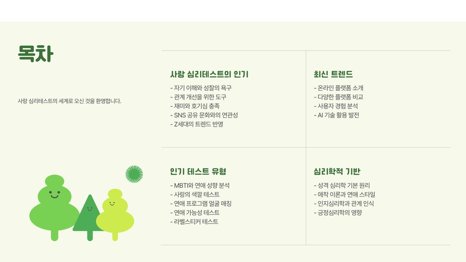 - 사랑의 심리테스트는 개인의 성격과 행동을 이해하는 데 도움을 줌