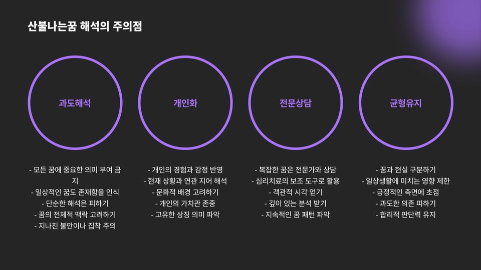 - 꿈의 해석은 개인의 상황과 감정에 따라 달라짐.