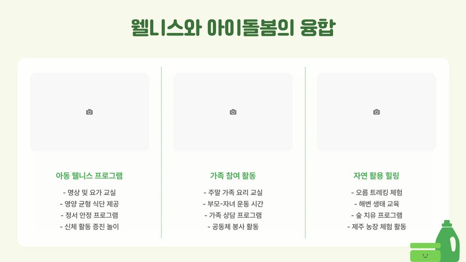 또한, 제주도는 자연 환경이 좋고 교육적인 자원이 풍부한 지역입니다. 이에 따라 아이들이 건강하게 성장할 수 있는 환경을 제공하기 위해, 전문적인 아이돌보미의 역할이 더욱 중요해지고 있습니다. 아이돌봄 서비스는 이러한 전문성을 바탕으로 아이들에게 맞춤형 교육 및 돌봄을 제공하고 있습니다.