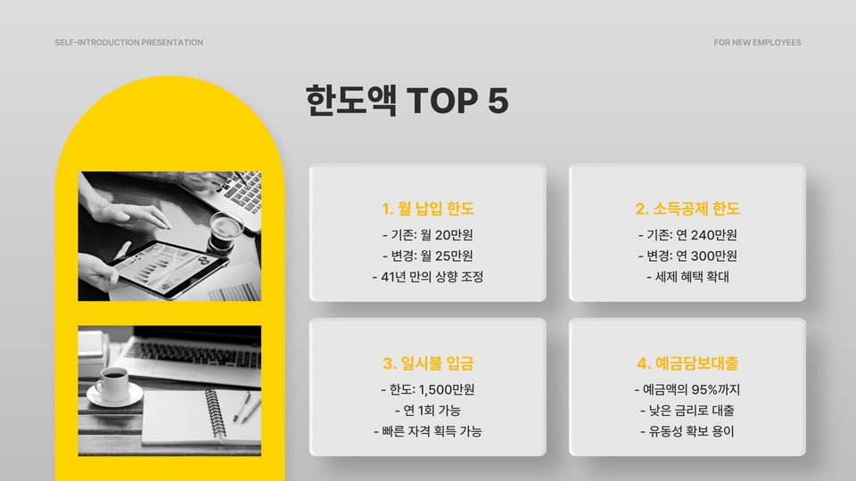 이제 주택청약 종합저축의 한도액을 TOP 5로 비교 분석하여, 각 상품의 장단점을 살펴보도록 하겠습니다. 이를 통해 어떤 상품이 개인의 상황에 더 적합한지를 판단할 수 있을 것입니다.
