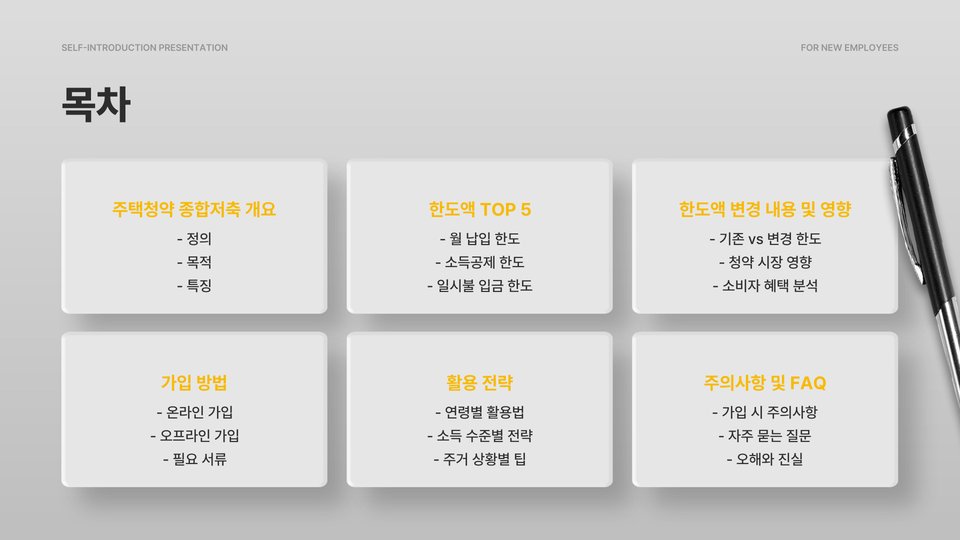 - 주택청약종합저축은 내 집 마련의 필수 상품입니다.