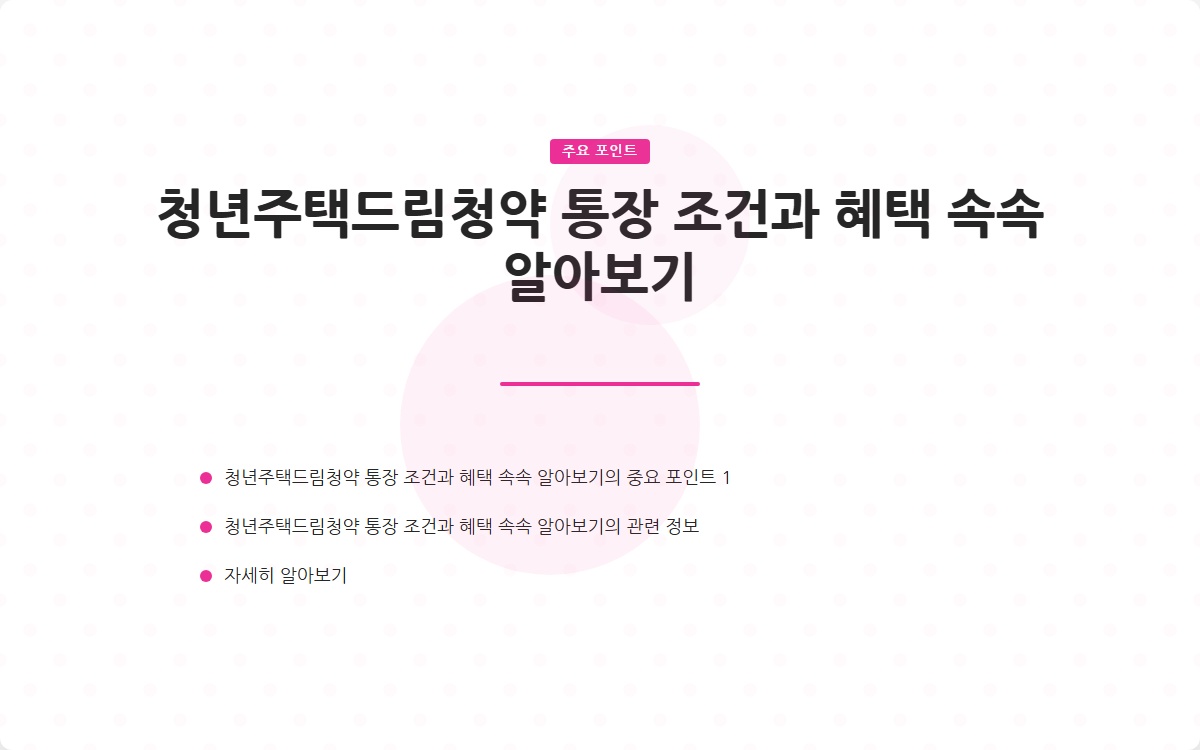 청년 주택드림 청약통장은 청년들에게 주거 안정을 위한 강력한 도구가 될 수 있습니다. 다양한 조건과 혜택을 충분히 이해하고, 올바른 방법으로 청약통장을 활용하여 꿈꾸는 주택을 마련할 수 있도록 하세요.