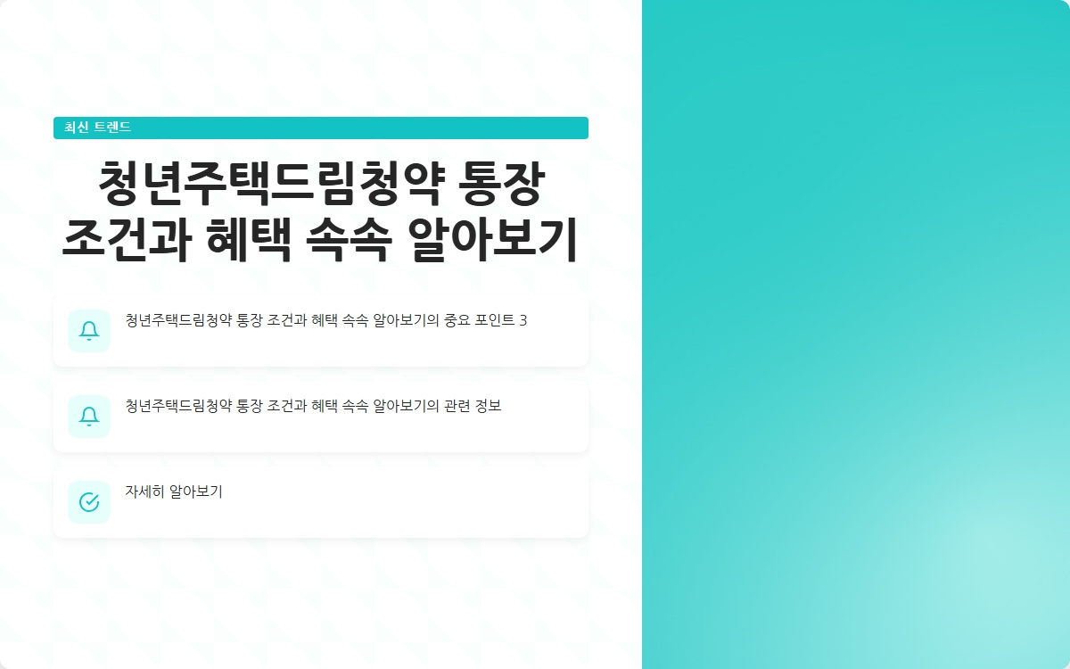 청년주택드림청약 통장 조건과 혜택 속속 알아보기