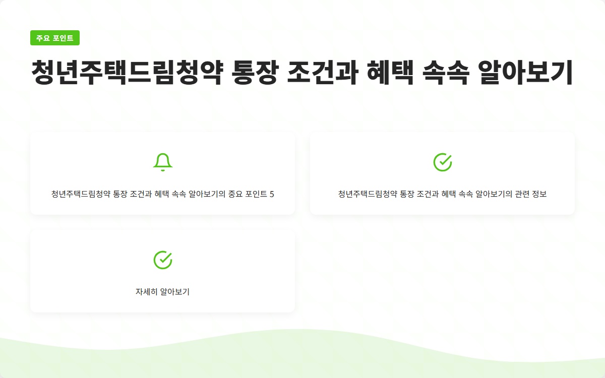 중요! 청년주택드림청약 통장을 이용하기 위해서는 기본 조건을 반드시 충족해야 하며, 각종 정부 정책의 변동사항도 수시로 체크해야 합니다.
