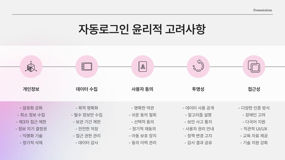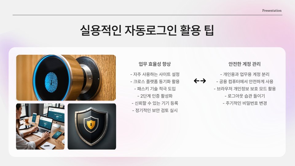 이 시스템은 특히 여러 플랫폼에서 동일한 계정으로 접속할 때 유용합니다. 예를 들어, 여러분이 스마트폰과 컴퓨터에서 모두 구글 계정으로 로그인한다면, 자동로그인 기능 덕분에 매번 비밀번호를 입력할 필요 없이 원활하게 서비스를 이용할 수 있습니다. 하지만, 보안상의 이유로 공용 컴퓨터에서는 이 기능을 사용하는 것을 피하는 것이 좋습니다.