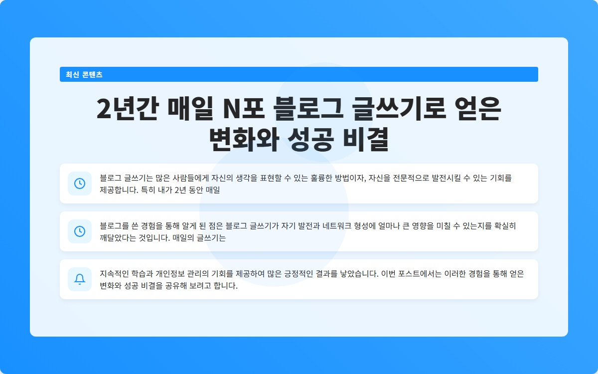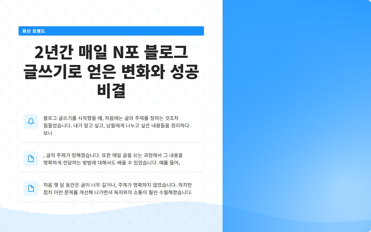 2년간 매일 N포 블로그 글쓰기로 얻은 변화와 성공 비결