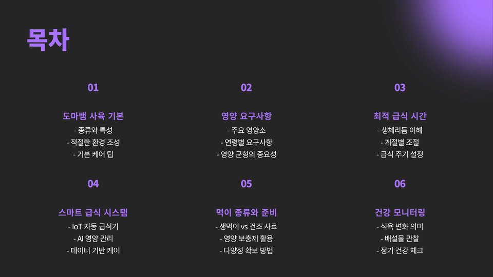 도마뱀을 기르는 것은 단순한 애완동물 관리가 아닌, 그들의 생태와 습관에 대한 깊은 이해와 책임감을 동반합니다. 지속적인 학습과 관찰로, 여러분의 도마뱀을 더욱 행복하게 만들어 보세요!