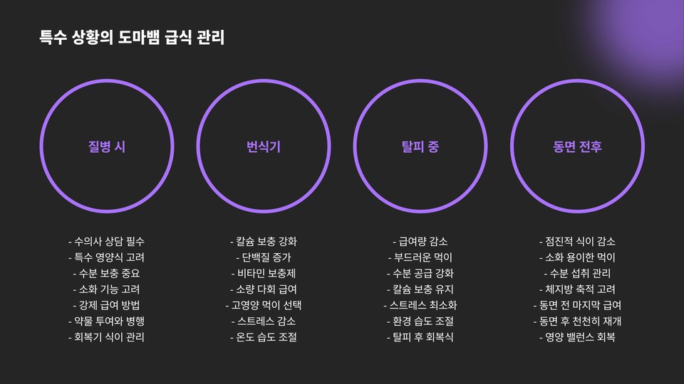 - 각 도마뱀의 특성에 따라 식사 시간을 조절해야 합니다.
