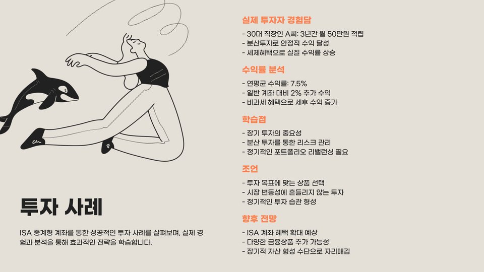 또한, ISA 중계형 소액은 유연한 투자 옵션을 제공합니다. 투자자는 자신의 투자 성향에 맞게 다양한 자산에 투자할 수 있으며, 필요에 따라 언제든지 자산을 이동할 수 있습니다. 이는 투자자가 시장 변화에 빠르게 대응할 수 있게 해줍니다.