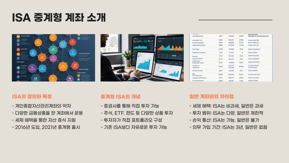 ISA는 개인 저축 계좌를 통해 세금 혜택을 받을 수 있는 계좌입니다. 여기서 중계형 소액 투자는 대표적인 투자 유형으로, 전문가의 중개를 통해 다양한 자산에 소액으로 투자할 수 있는 방식입니다. 이 방식은 초심자들이나 소액 자본이 있는 개인 투자자에게 특히 유리합니다. 중계형 소액 투자의 주요 특징은 바로 적은 자본으로 시작 가능하고, 다양한 투자 상품에 접근할 수 있다는 점입니다.