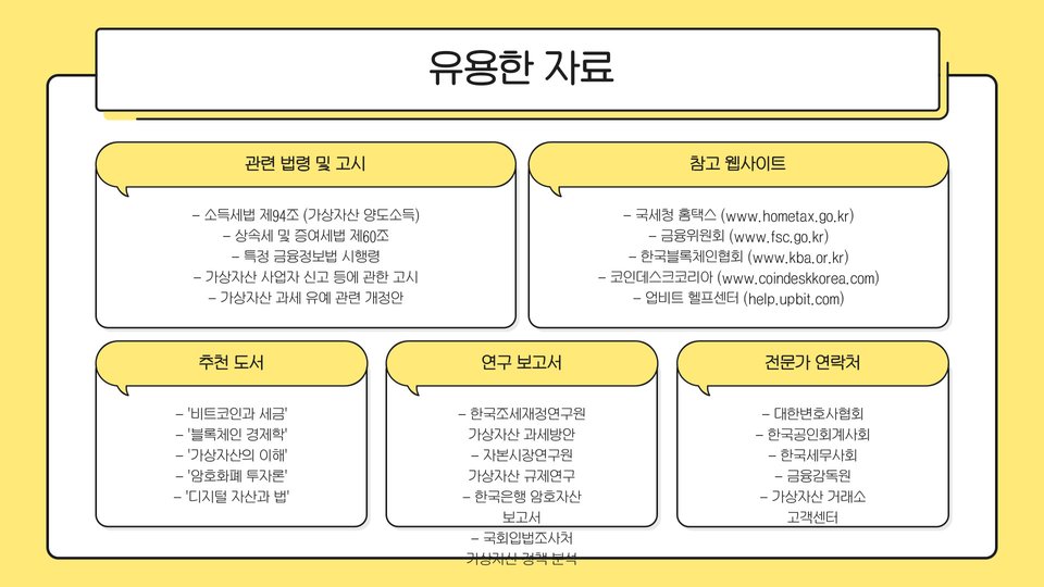 이제 비트코인 거래를 통해 얻은 수익에 대한 세금 문제를 명확히 이해하고, 이를 잘 관리하는 방법을 익히셨길 바랍니다. 비트코인 세금에 대한 정확한 정보와 체계적인 관리로 성공적인 투자 생활을 이어가시길 바랍니다.