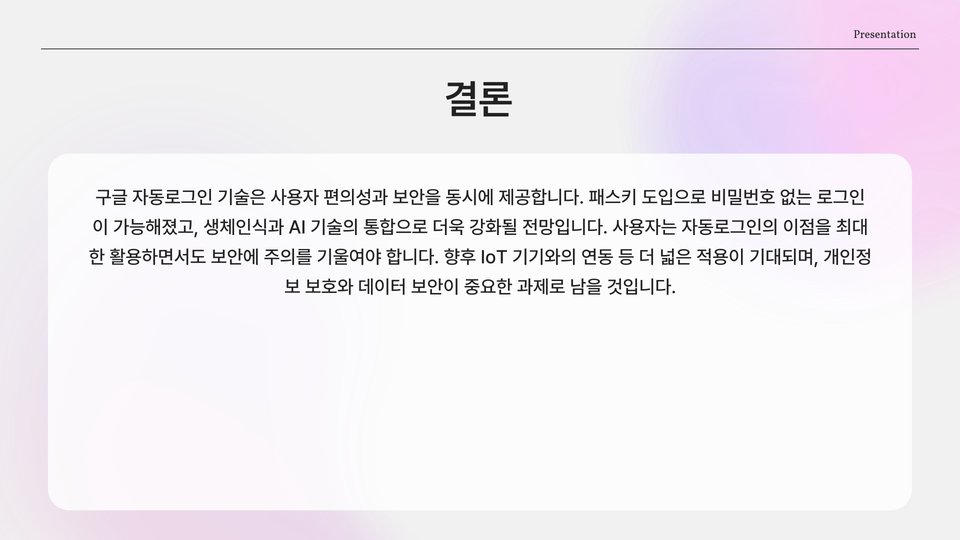 - 구글 자동로그인은 편리하지만 보안에 주의해야 합니다.